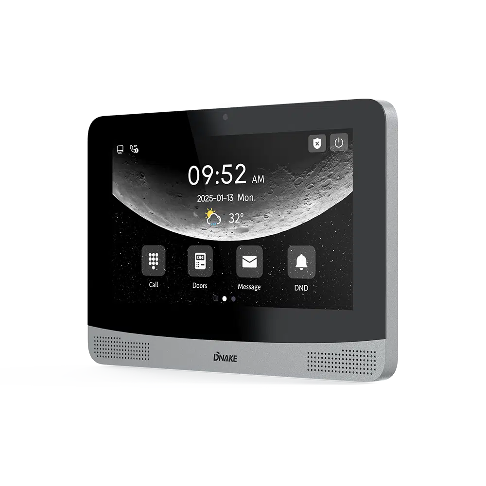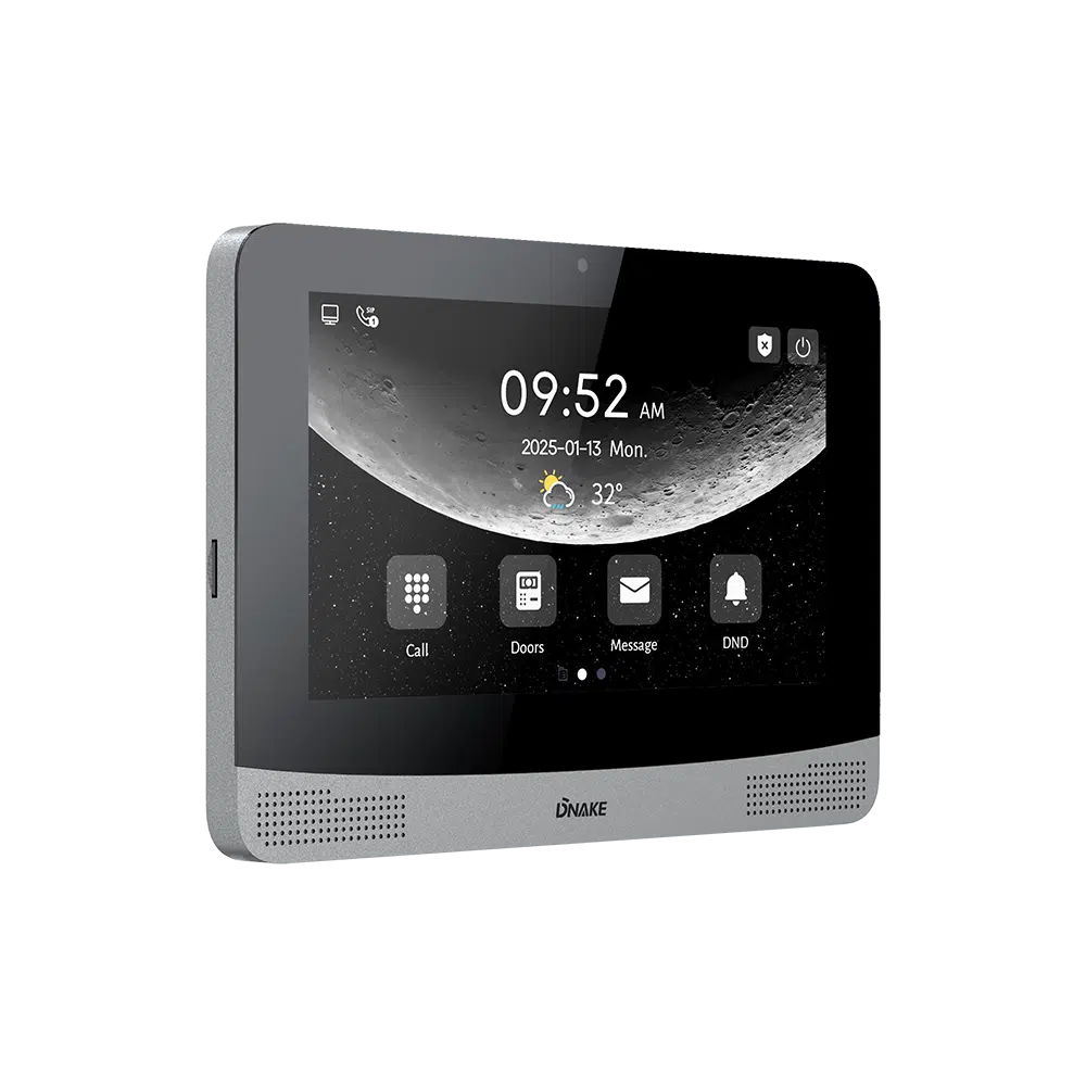 DNAKE A416 to 7-calowy monitor wewnętrzny IP z systemem Android 10 i wyświetlaczem IPS LCD. Wyróżnia się opcjonalną kamerą 2 MP do wideorozmów wewnątrz budynku oraz modułem WiFi. Model A416 łączy kompaktowe wymiary z pełną funkcjonalnością systemu Android.