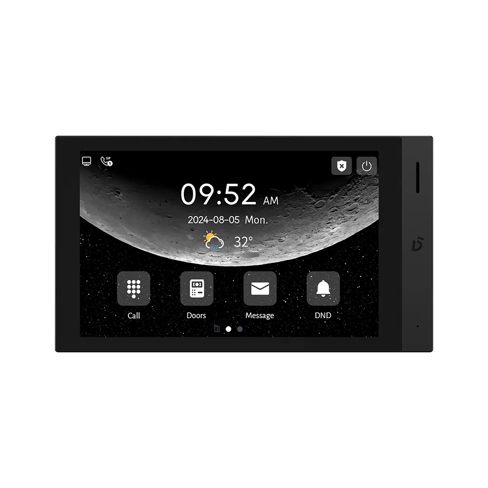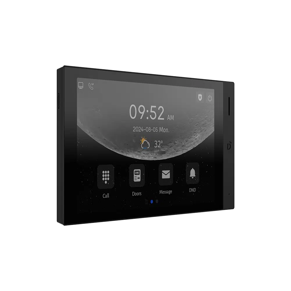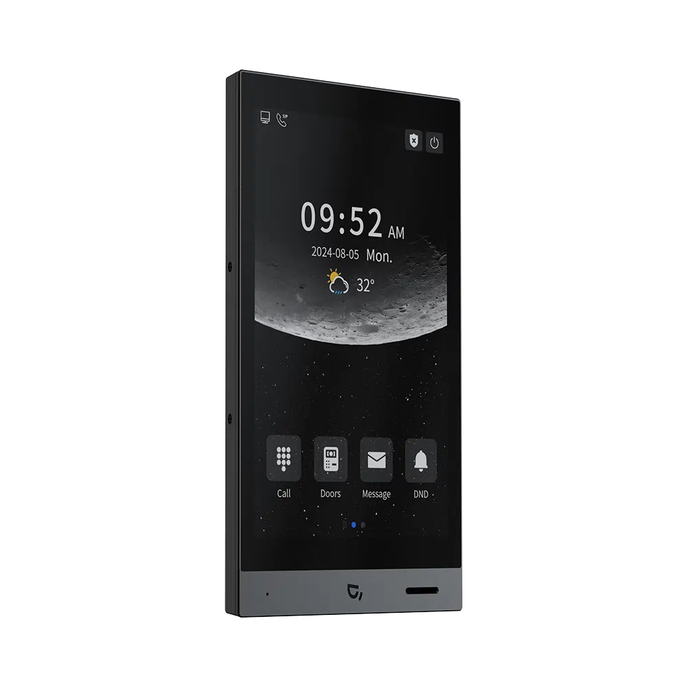 DNAKE H616 to 8-calowy monitor wewnętrzny IP z systemem Android 10, łączący kompaktowe wymiary z zaawansowaną funkcjonalnością. Dzięki obudowie z aluminium i plastiku z wąską ramką oraz wyświetlaczowi IPS o rozdzielczości 1280 × 800, H616 oferuje świetną jakość obrazu w eleganckiej formie. Elastyczny interfejs pozwala na pracę w orientacji pionowej lub poziomej.